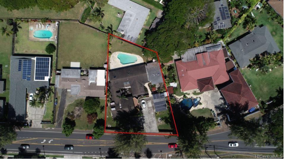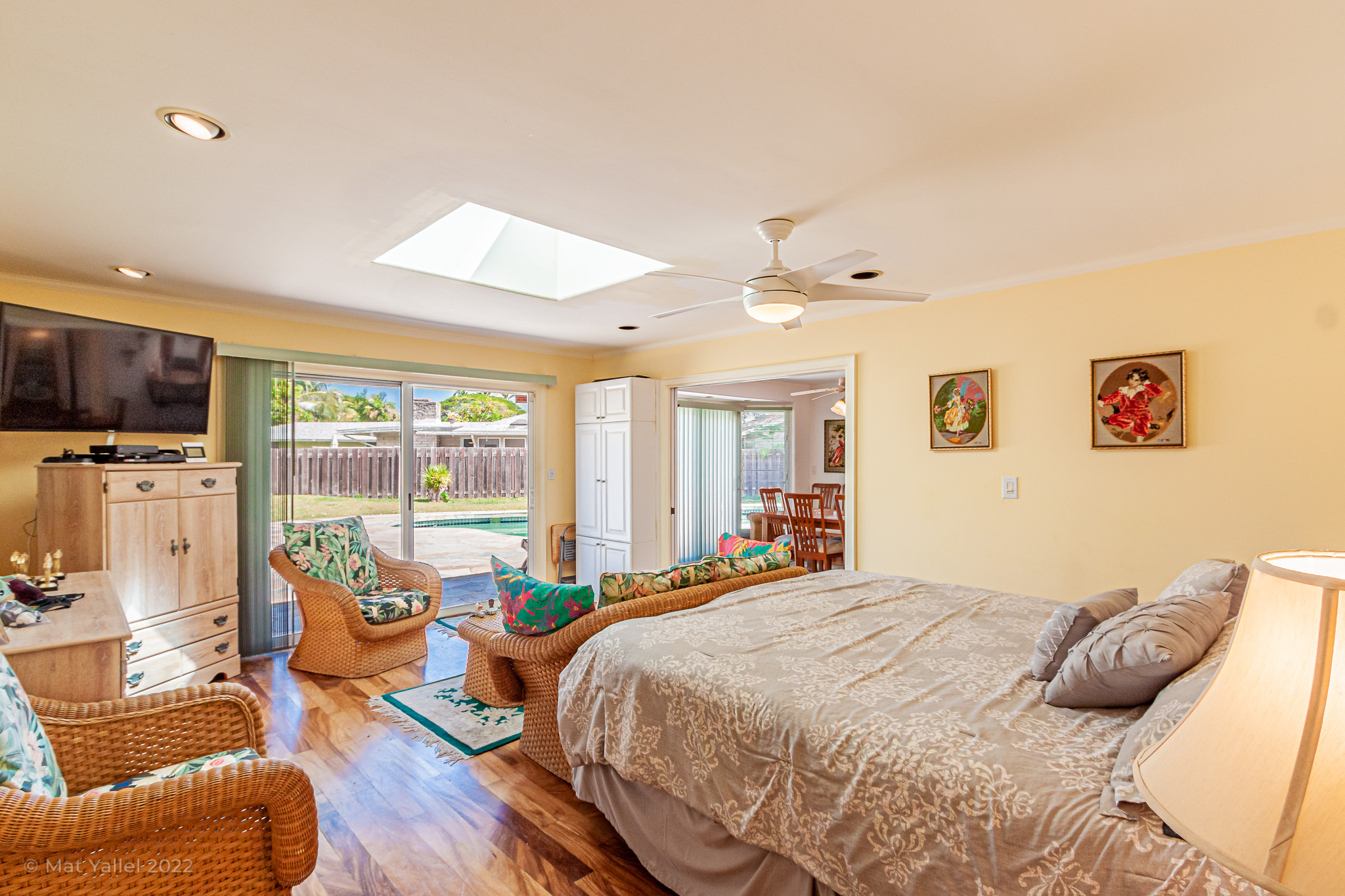 Welcome home to your luxury Kailua estate with a gorgeous in-ground pool. The home layout consist of a single story 3 bedroom 2.5 main home with a connected studio apartment. The estate also includes two additional 1 bedroom 1 bath units. Gorgeous kitchen that is perfect for large family gatherings. The uniquely designed master bedroom includes two studies that you can use for your home office. Wonderful skylights throughout the home to add warm natural lighting. Enjoy the amazing Kailua weather as you relax and unwind by the pool. Large owned solar panel system is perfect to help keep your electric bills in check. Bed and breakfast (NUC) permit attached in supplement section. Close to world famous Kailua beach, downtown Kailua, golfing, parks, hiking, and schools. View 3D Interactive video tour.