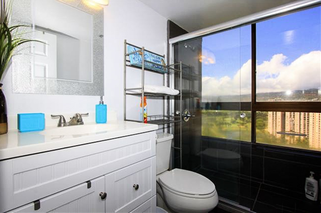 2 Bedroom 2 bath unit in the desirable Plaza Landmark building in Salt Lake on the 24th floor. Overlooking the Honolulu Country Club golf course, you will be in awe of your view everyday. Modern design touches throughout the unit. Home is in Move in ready condition and Centrally located close to schools, parks, golfing, and Pearl Harbor. The unit features Walk-in showers, stainless steal appliances, washer/dryer, and laminate flooring. Fully renovated with new kitchen and both bathrooms. With wood floors throughout and tile in kitchen and BR. It is sold "as is" fully furnished also with three portable A/C units. View 3D Interactive Video Tour in Virtual tour section.