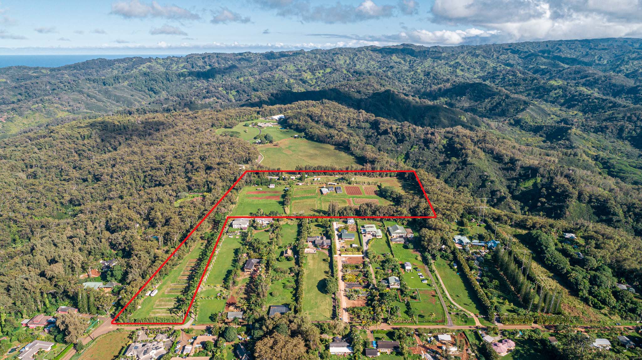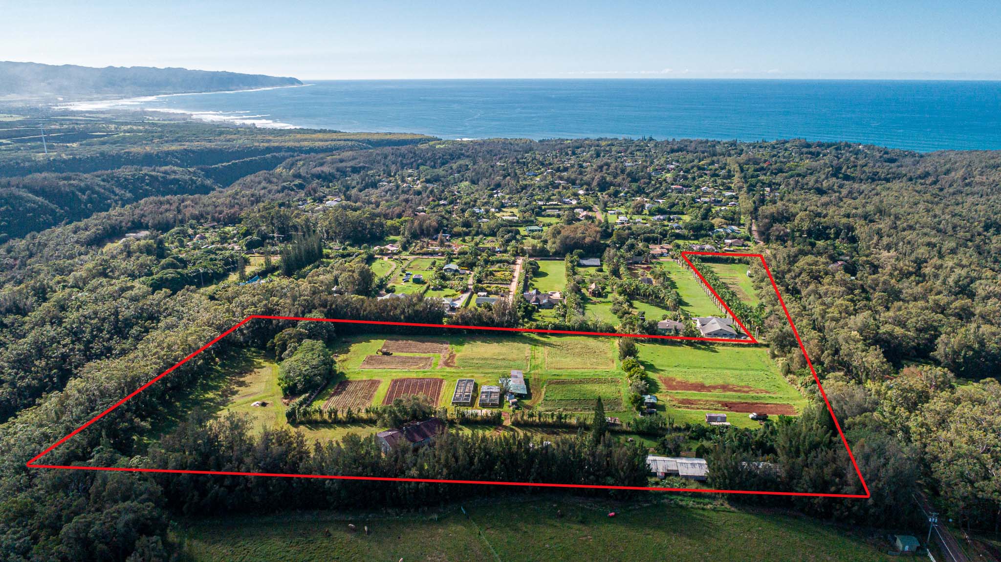16 acres of AG-2 land with world class views of the North Shore. The land boarders Sunset Ranch and has an organic farm plus 2 rental properties (3 bedroom 1 bath). Make this a luxury estate, country farm, or subdivide. North Shore country living at it's finest. Make this the retreat you have been dreaming of. 3D interactive video tour coming soon.