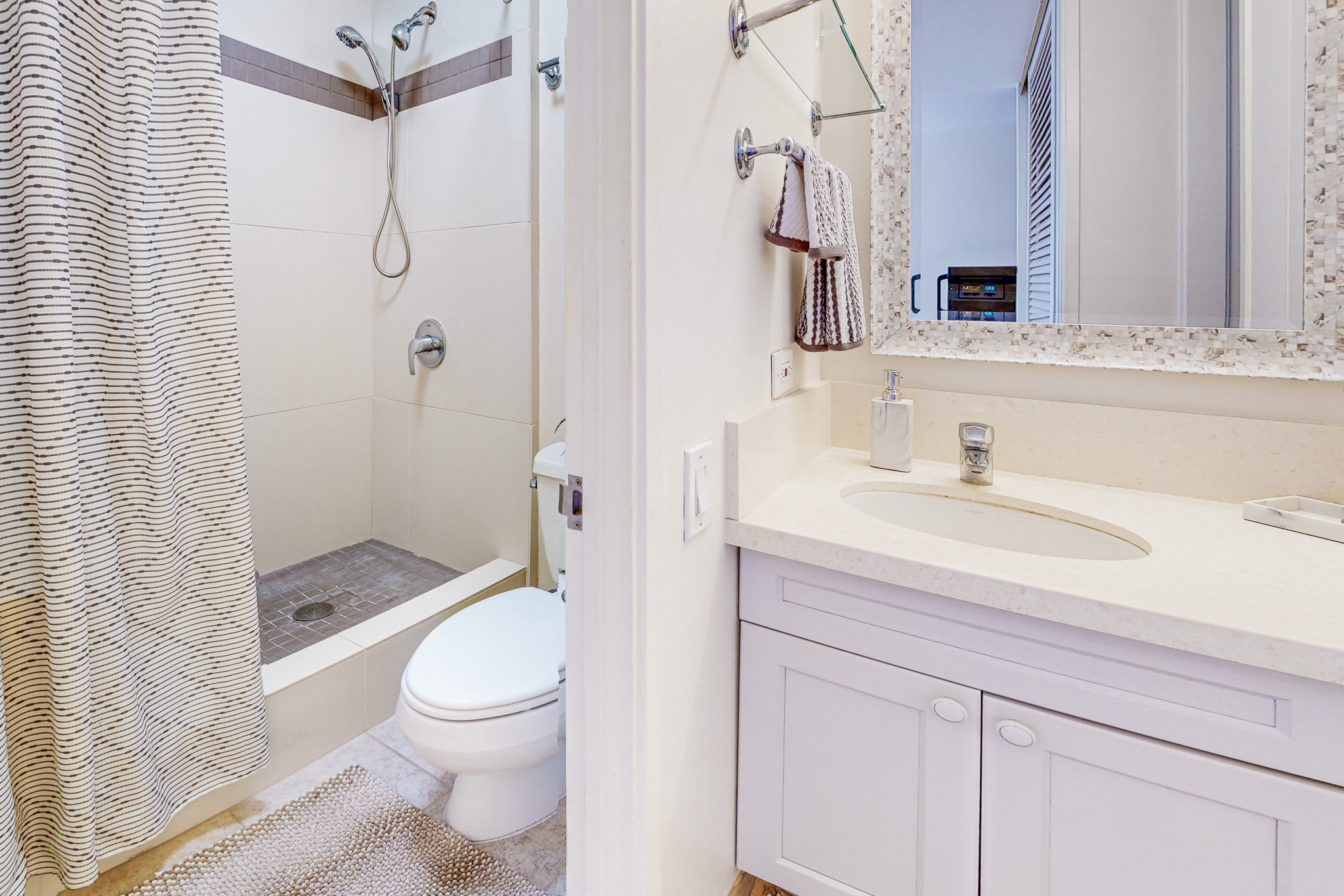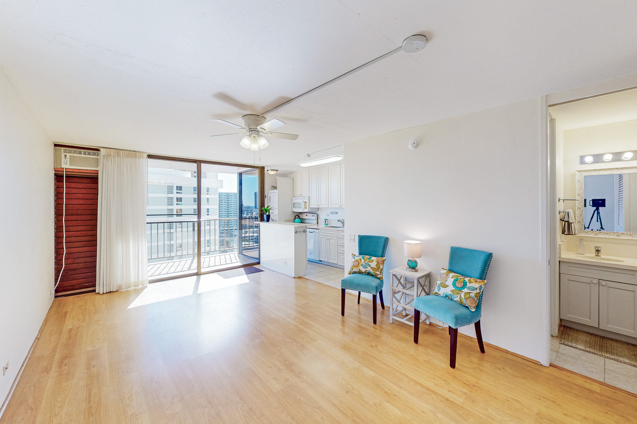 This move-in-ready 1-bedroom, 1-bathroom condominium in the well-maintained Camelot building features a beautifully remodeled bathroom with a walk-in shower. The unit boasts laminate flooring in the living area, carpeted bedroom and an updated kitchen equipped with new cabinets and a kitchen island. The bathroom also showcases stylish tile flooring. Enjoy stunning mountain and city views from the spacious lanai. Additional features include window treatments, 24/7 security, and a car wash facility. The Camelot building is equipped with outstanding amenities, such as a pool, sauna, BBQ areas, a fitness center, and a recreation room. Conveniently located in a quiet neighborhood, this property is just minutes from Ala Moana Center, Makiki Shopping Village, bus lines, and easy freeway access. One covered parking stall is included, and please be aware that a special assessment is in effect until June 2025.
