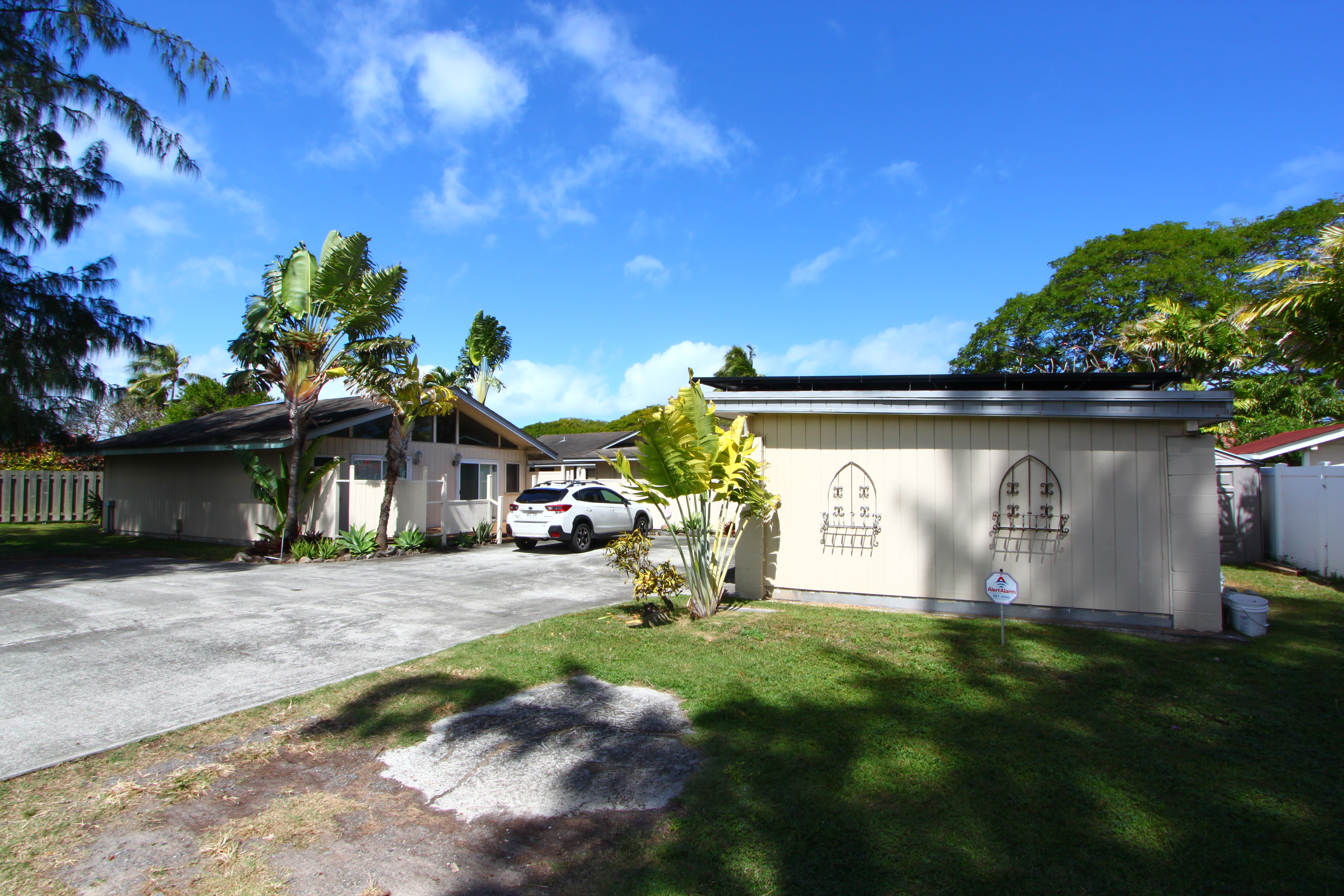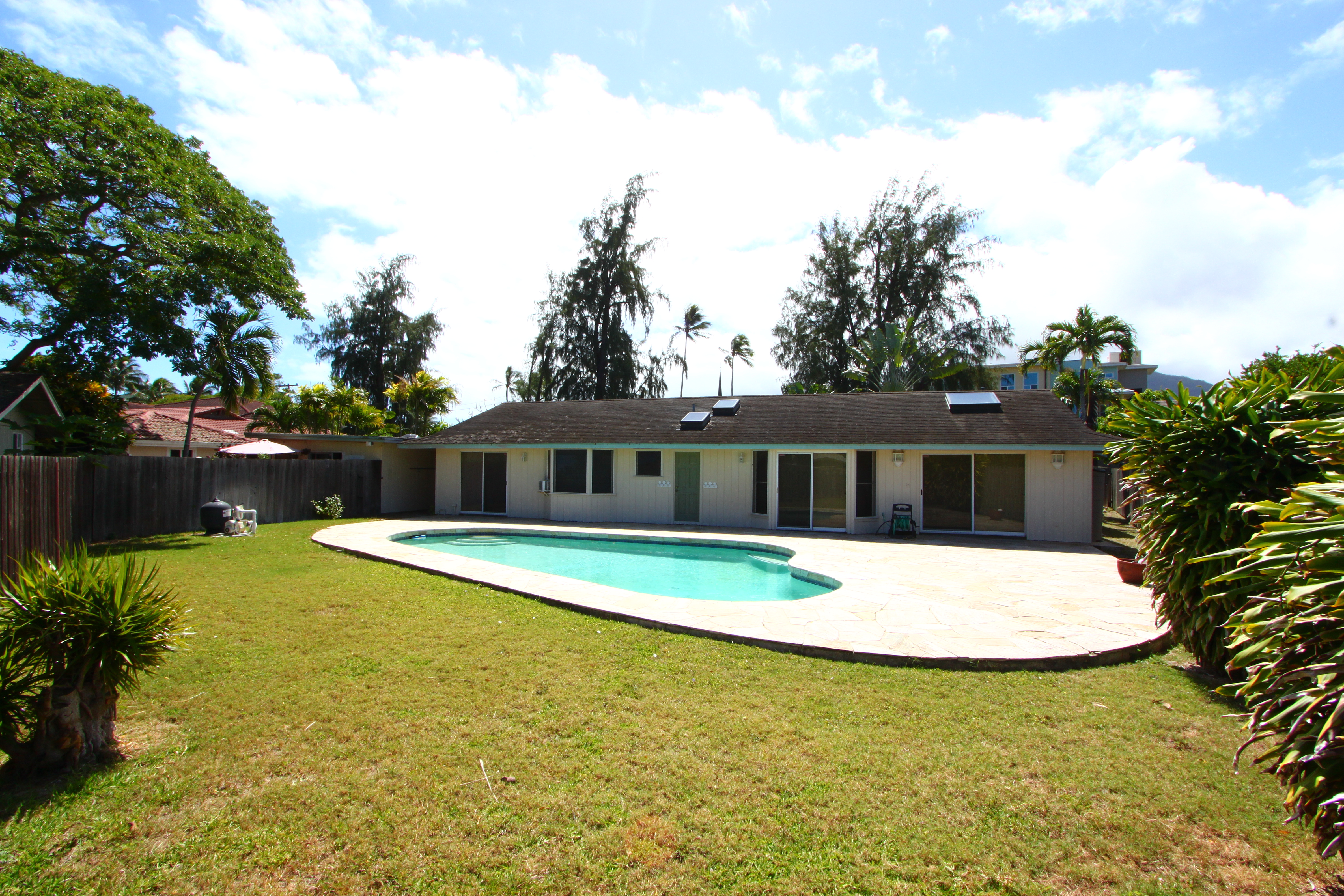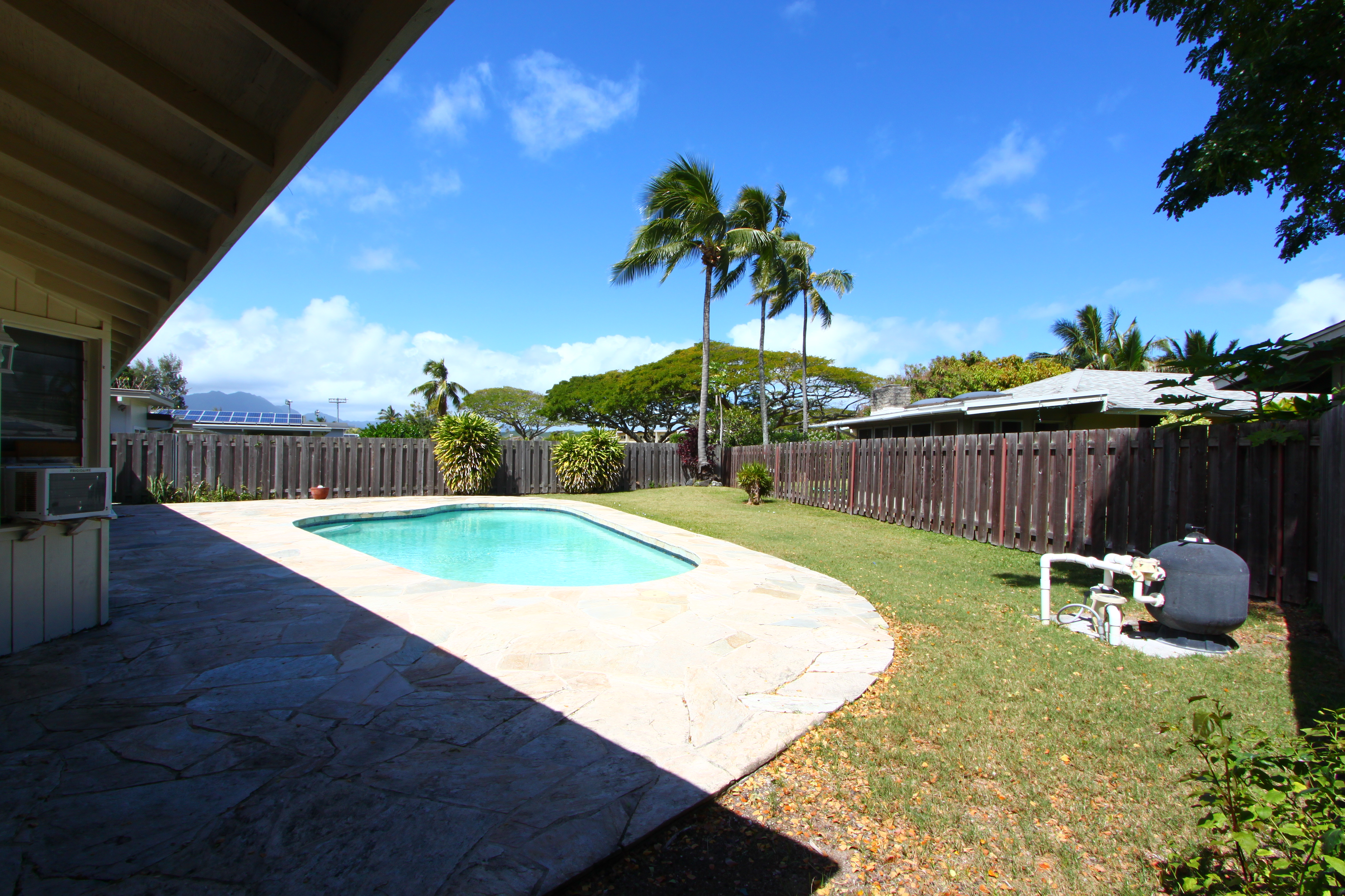 Welcome home to your luxury Kailua estate with a gorgeous in-ground pool. The home layout consist of a single story 3 bedroom 2.5 main home with a connected studio apartment. The estate also includes two additional 1 bedroom 1 bath units. Gorgeous kitchen that is perfect for large family gatherings. The uniquely designed master bedroom includes two studies that you can use for your home office. Wonderful skylights throughout the home to add warm natural lighting. Enjoy the amazing Kailua weather as you relax and unwind by the pool. Large owned solar panel system is perfect to help keep your electric bills in check. Bed and breakfast (NUC) permit attached in supplement section. Close to world famous Kailua beach, downtown Kailua, golfing, parks, hiking, and schools. View 3D Interactive video tour.