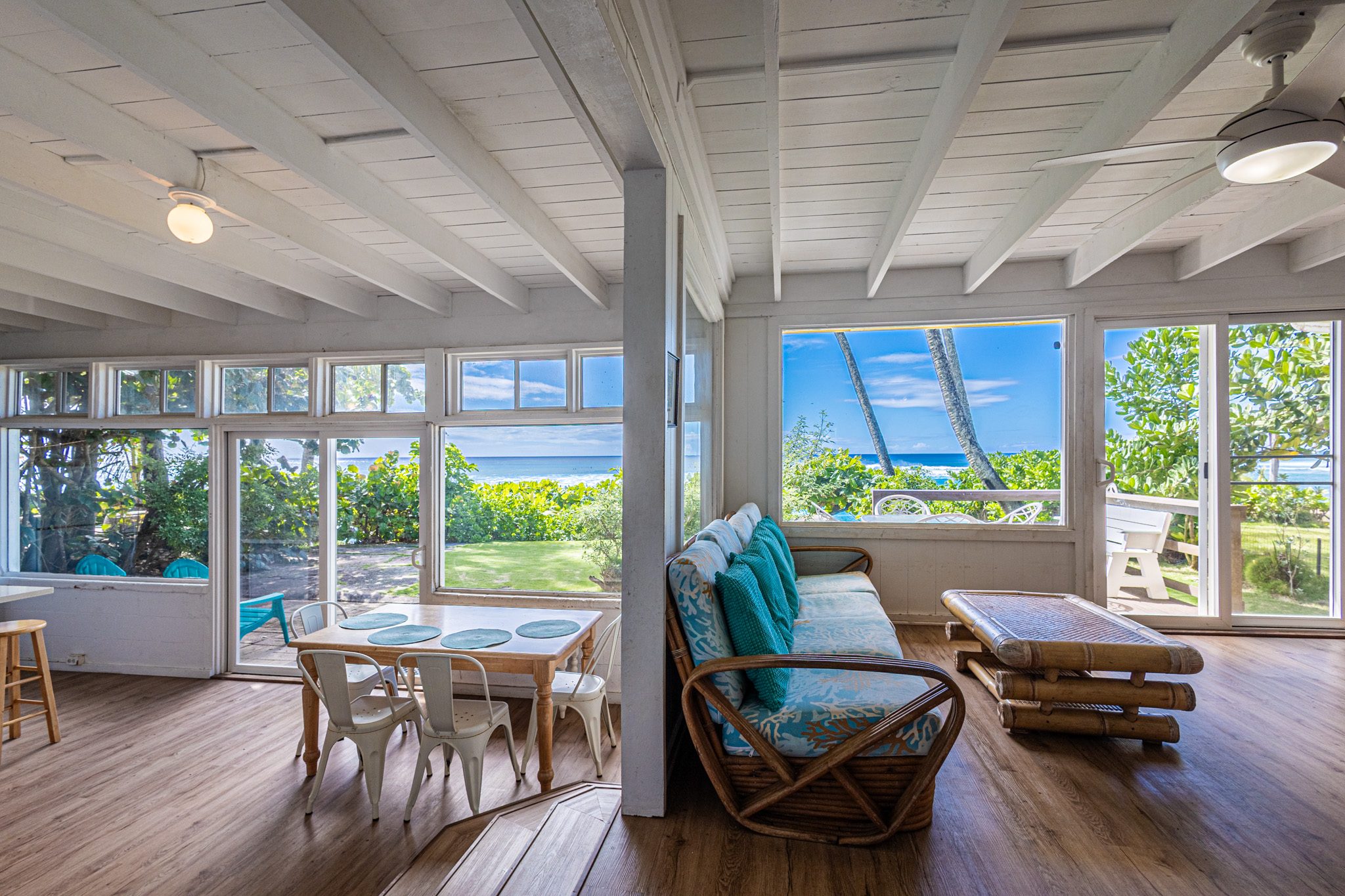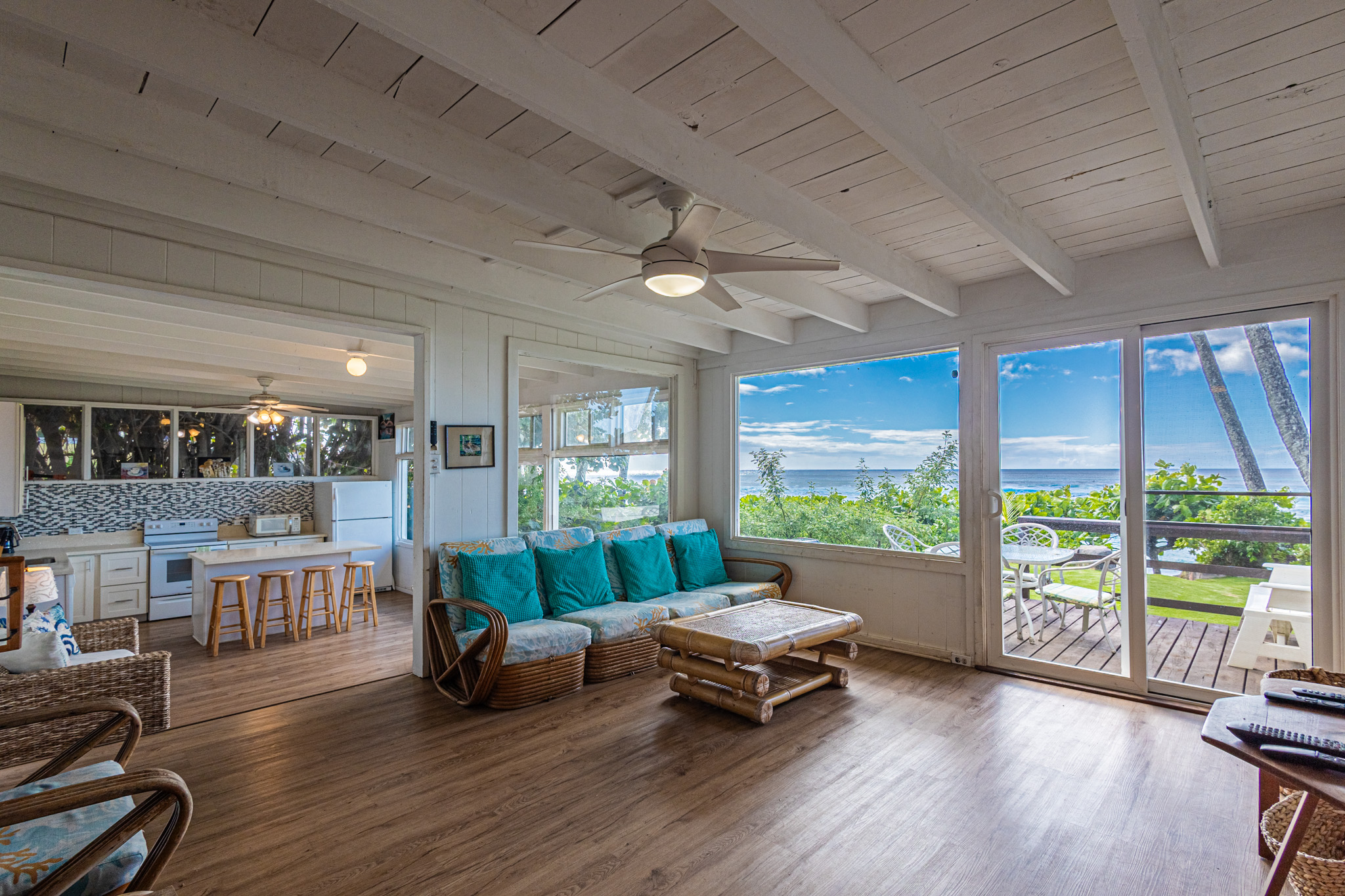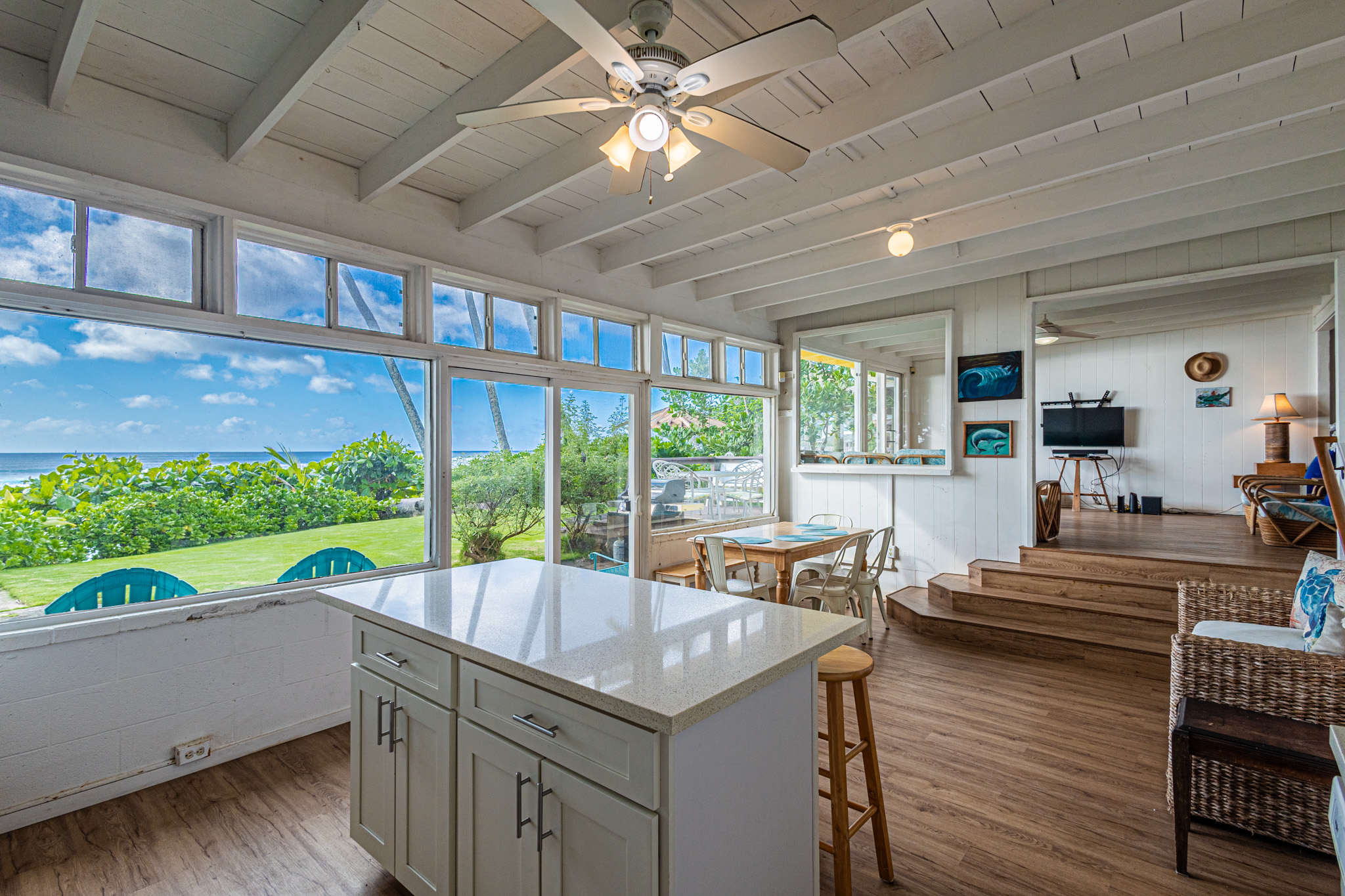 Discover the Ultimate North Shore sanctuary, where a private path leads directly to the sand. This oceanfront retreat is designed to showcase breathtaking views of the surf and sunsets from its open-concept living space and updated modern kitchen. Step outside to your private oasis with an expansive back deck and a spacious front lawn—perfect for entertaining or simply soaking in the coastal beauty. Unlock Future Potential: Per architectural guidance, a two-story home could be built near the existing home's location, providing the opportunity to create your own custom oceanfront masterpiece. An elevation certificate is available, which eliminates the need for flood insurance. Natural sand accumulation in the area enhances the authentic beachside experience and connection to the shoreline. Co-ownership Opportunity Available for $1,050,000: The seller will consider selling a 25% co-ownership interest to 4 suitable candidates.