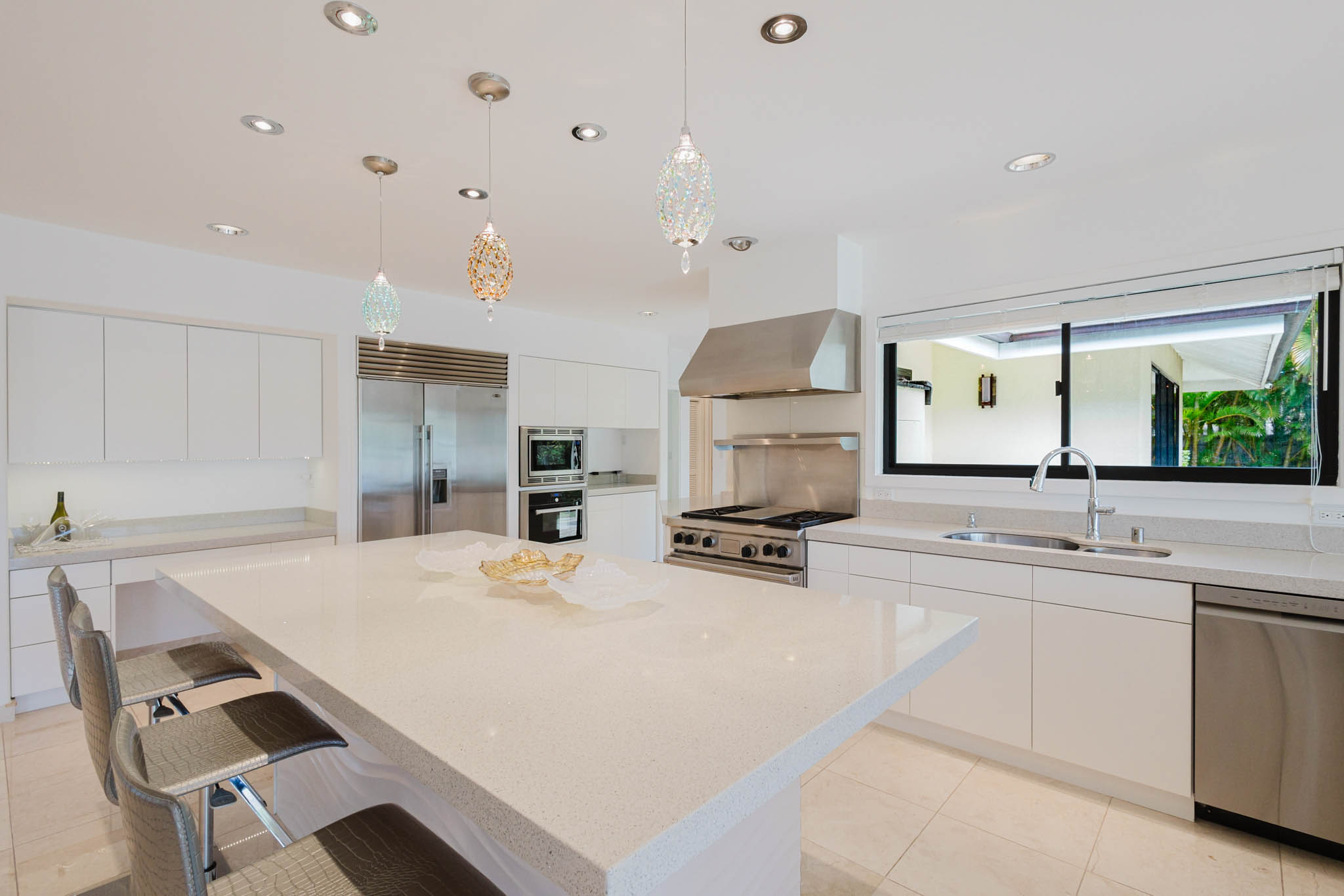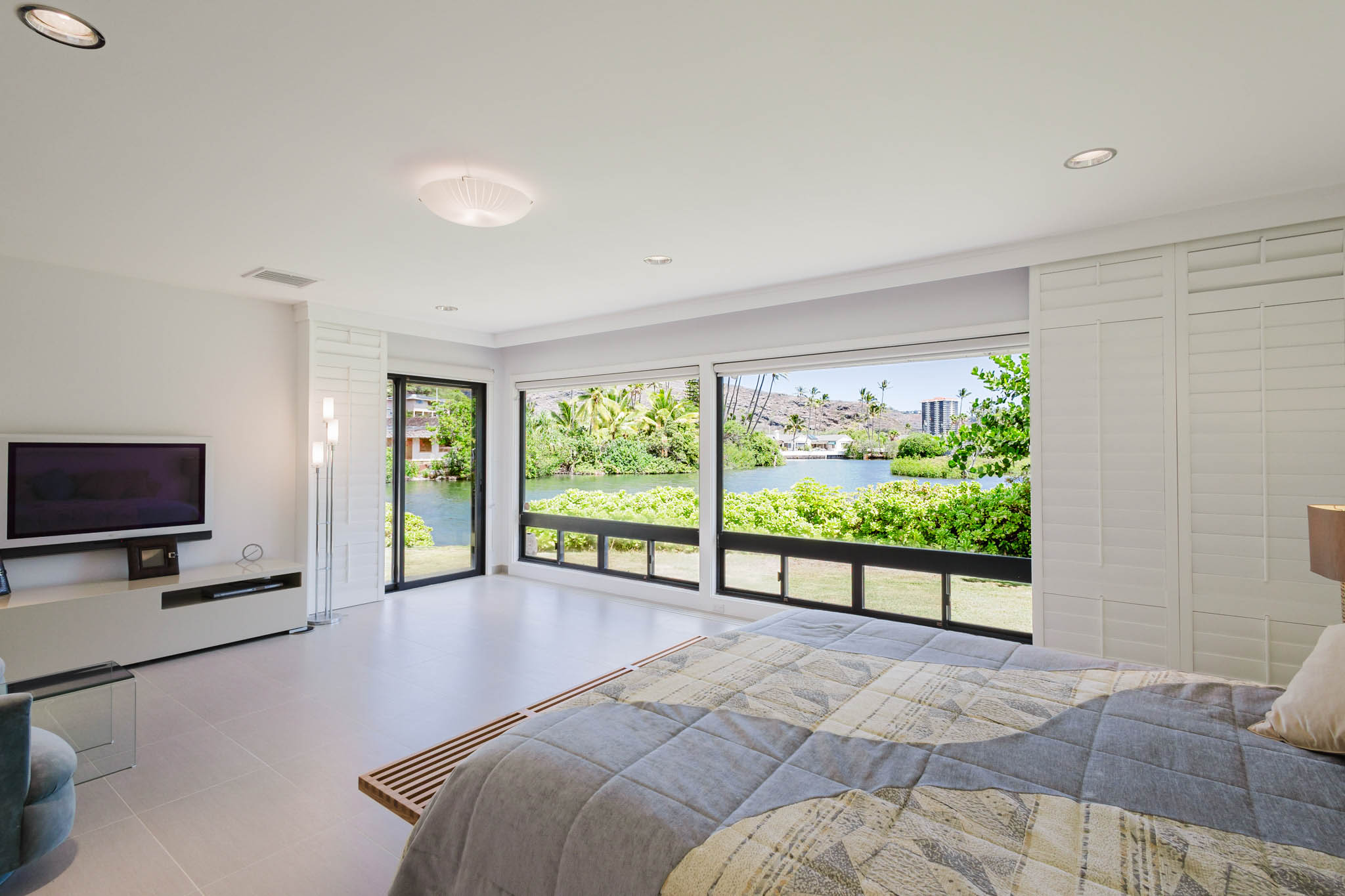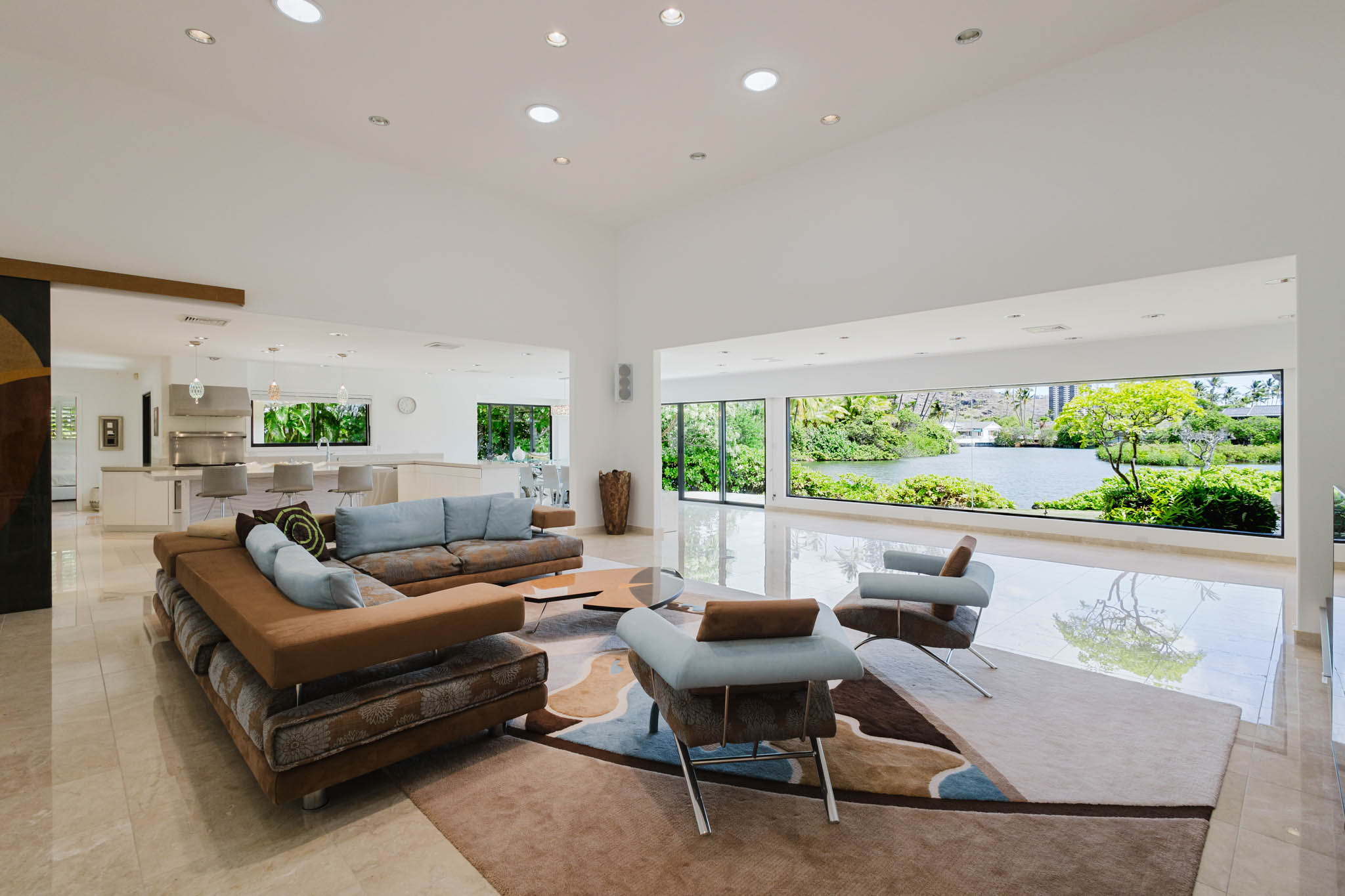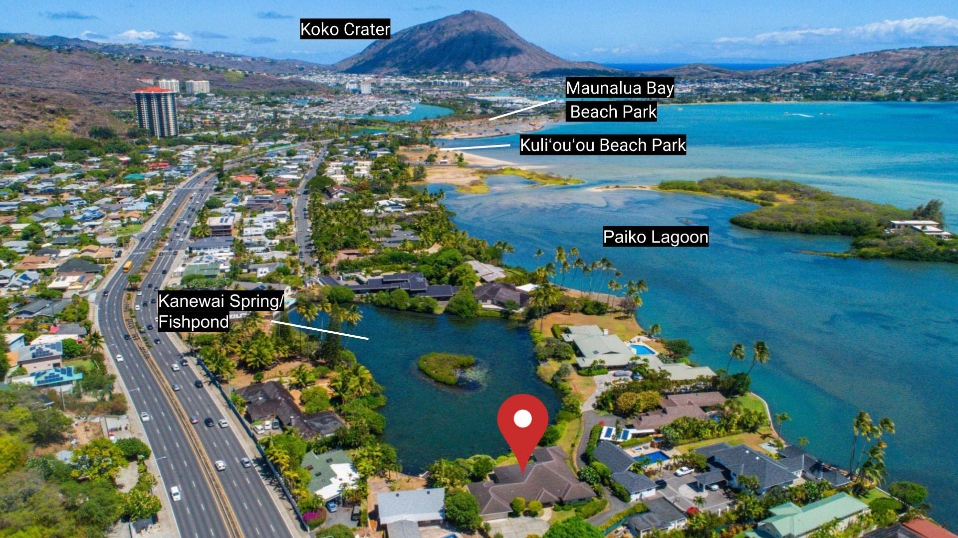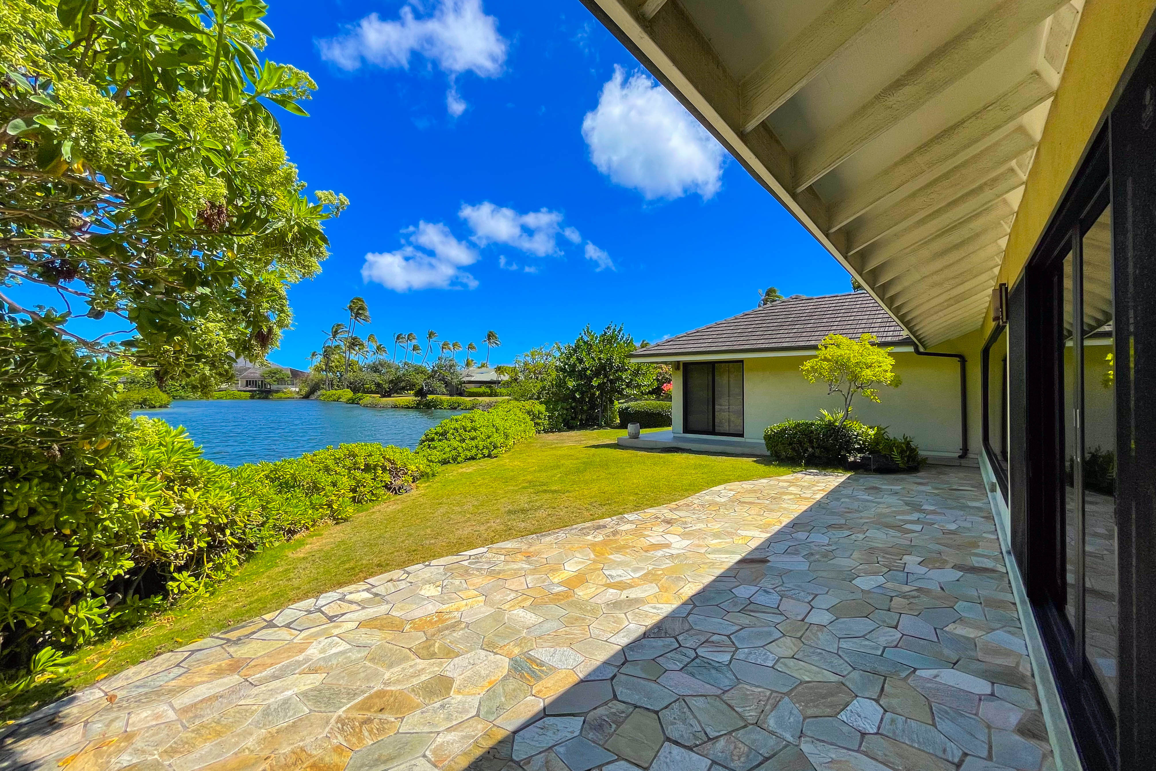 Welcome to your private waterfront retreat, nestled within a private, gated community. This residence invites you into a space of sublime volume and light, defined by its soaring high ceilings. Step into the designer kitchen, a perfect blend of style and functionality, and imagine preparing meals while gazing out at the serene waters. The true magic lies in your backyard, where a private dock awaits, offering direct access for kayaking or casting a line right from your doorstep. The setting is unparalleled, backing directly onto the historic Kanewai Fishpond and the protected Paiko Lagoon Wildlife Sanctuary. Here, your daily soundtrack is the gentle rustle of native reeds and the soft call of the resident Hawaiian ducks (koloa maoli) gliding across the pond. This home is a rare opportunity to live in harmony with Oahu's precious ecosystem in a setting of absolute privacy and peace.