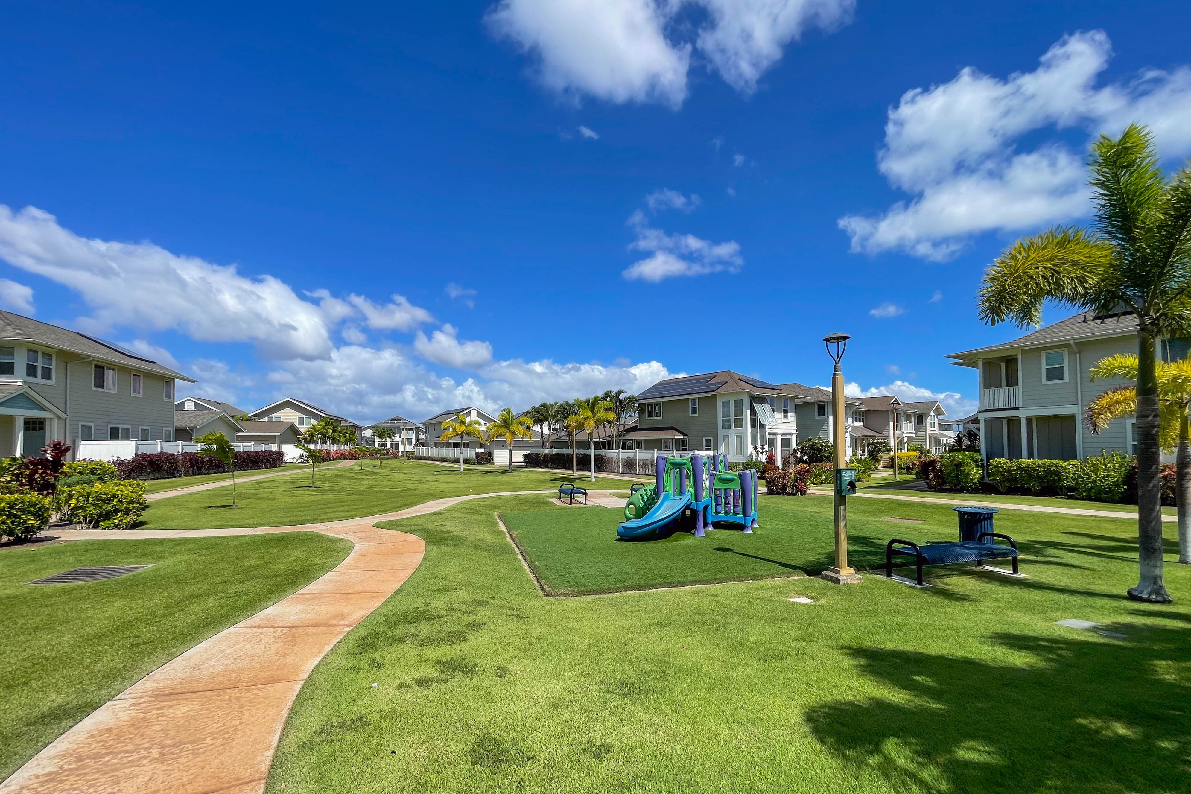 Best-Priced Home on the Hoakalei Golf Course — Corner Lot with Views! Enjoy golf course living without the worry of stray golf balls. This corner-lot home offers privacy, space, and scenic fairway and mountain views. The bright, open-concept floor plan features a modern kitchen with state-of-the-art appliances, a large island, and generous living and dining areas designed for both comfort and entertaining. Upstairs includes a versatile workspace ideal for remote work or study, along with spacious bedrooms and ample closet storage throughout. With 26 owned solar panels, enjoy energy efficiency and lower monthly costs year-round. Located in a meticulously maintained community with wide streets, lush landscaping, walking and biking paths, multiple pools, and access to the private Wai Kai Hale Lagoon for paddle boarding, kayaking, or relaxing in the sun. Live the Hoakalei lifestyle—vibrant, connected, and perfectly positioned.